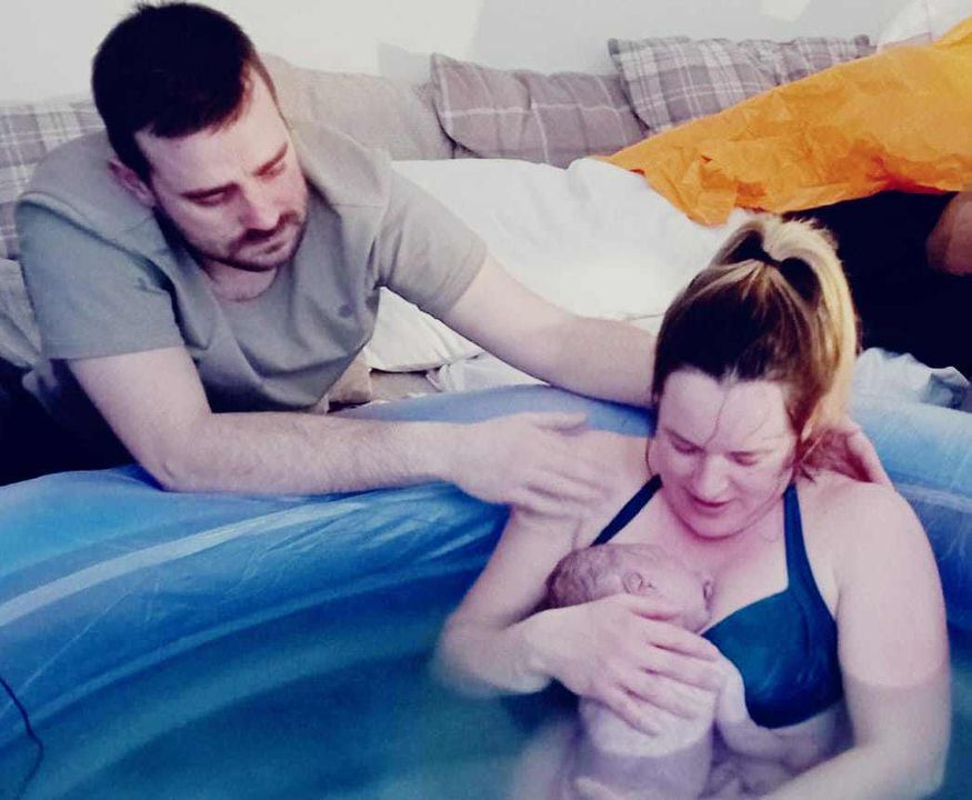 There was an instant relief when I got in the pool, and I had a little break from my surges as my body adjusted to the changes. I allowed for one examination but didn’t want to know how far on I was, but the midwife needed to stay and soon contacted a colleague to join her.